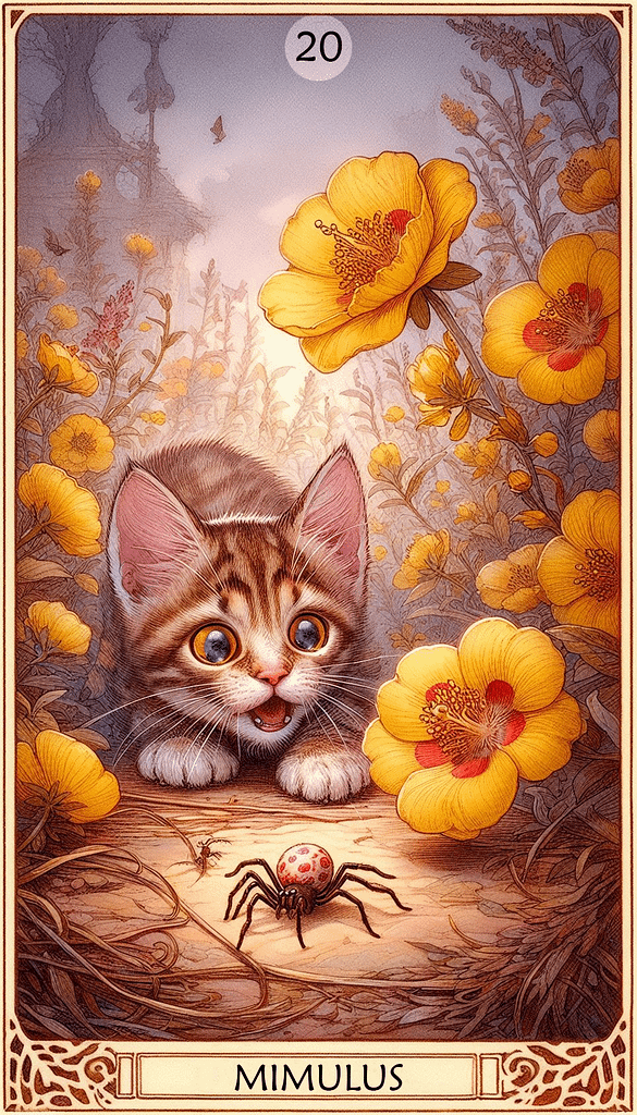 Mimulus, frisson léger face à l’inconnu,Tu trembles, mais ton courage est retenu.Fleur de la force face aux peurs nommées,Elle murmure : « Affronte-les, tu sauras les dompter. » Catégories : Illustrations autour des fleurs de Bach. Tags: fleur de bachmimulemimulusoracletarot 0 commentaire Laisser un commentaire Annuler la réponseVotre adresse e-mail ne sera pas publiée. Les champs obligatoires sont indiqués avec * Nom * E-mail * Site internet Qu’avez vous à l’esprit ? Prévenez-moi de tous les nouveaux commentaires par e-mail. Prévenez-moi de tous les nouveaux articles par e-mail. Δ