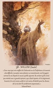 Par analogie avec la gestuelle de la plante, le Docteur Bach a associé la fleur de Saule aux personnes gémissantes, toujours à se plaindre, à tort ou à raison là n’est pas la question : ils voient surtout le côté négatif des choses.
